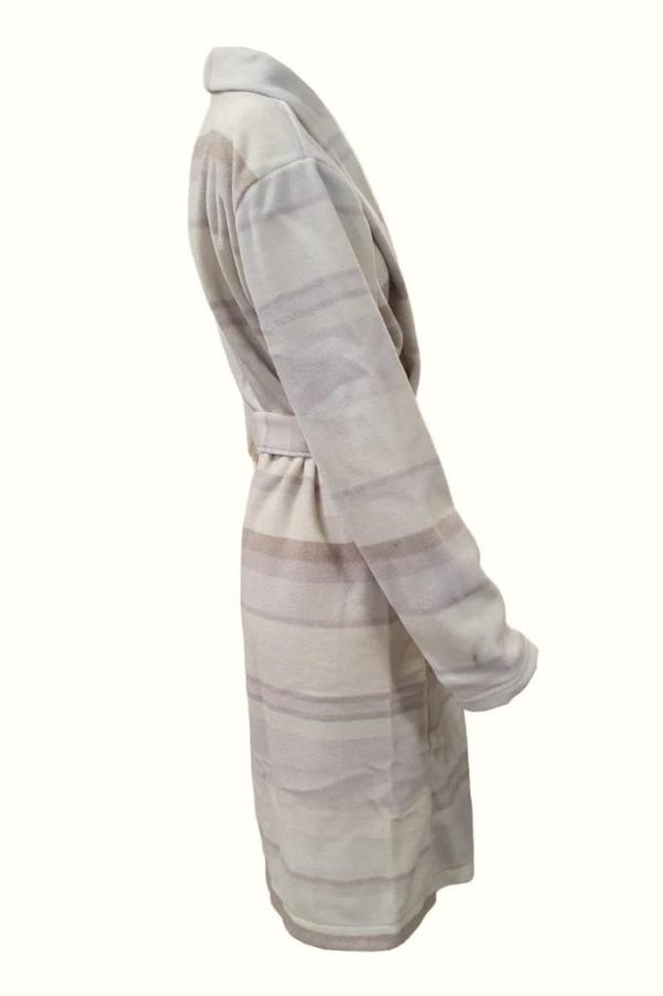 Ciciten 23C08 Çizgili Cepli Kışlık Uzun Polar Bayan Sabahlık