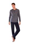Altı iki iplik üstü jakarlı patlı düğmeli yaka erkek pijama takım,
