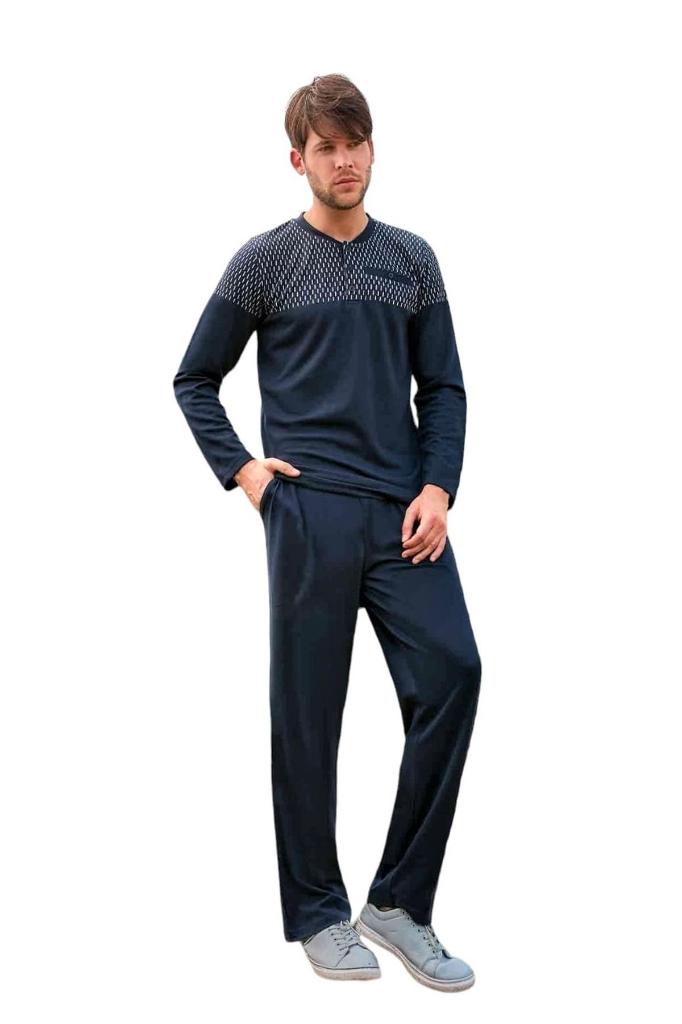 İki iplik patlı yaka kışlık günlük erkek pijama takım,