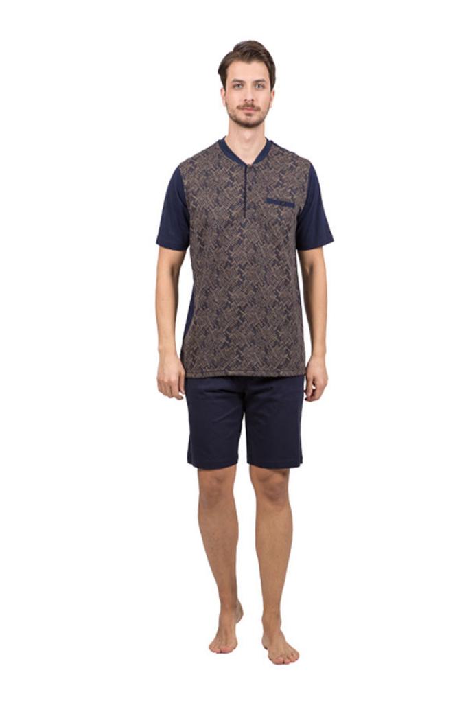 Çift Kaplan 3’lü Şortlu Kısa Kol Jakarlı Erkek Pijama Takım