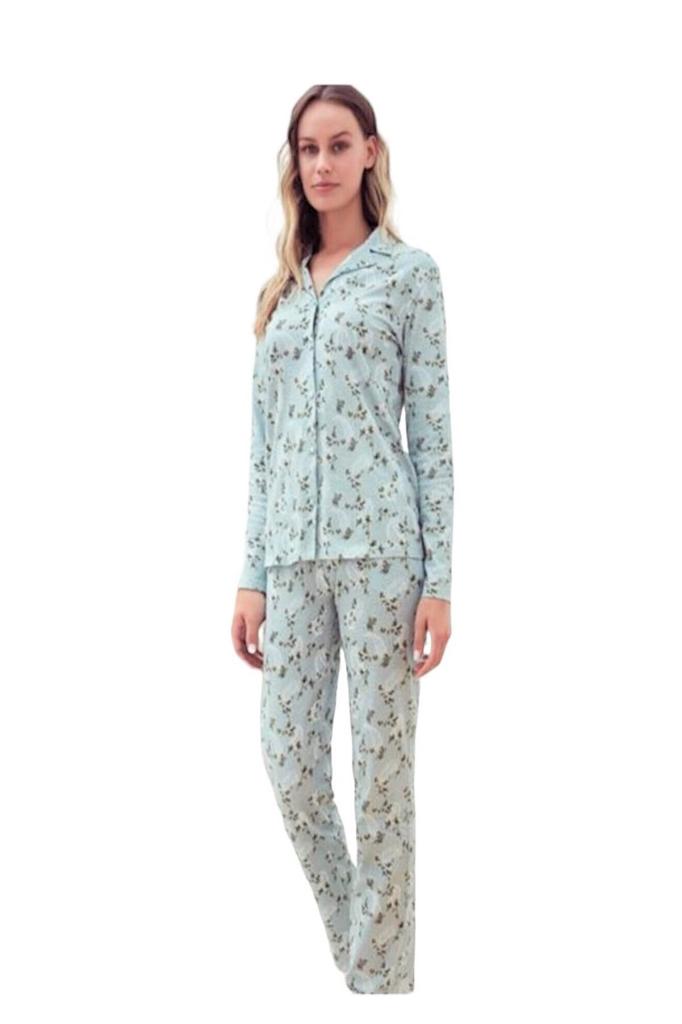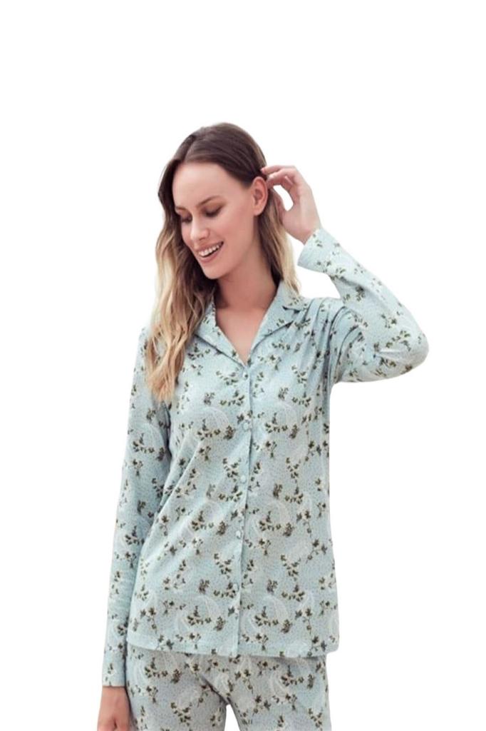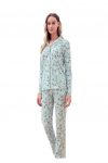 Uzun kol boydan düğmeli günlük kadın pijama takım,