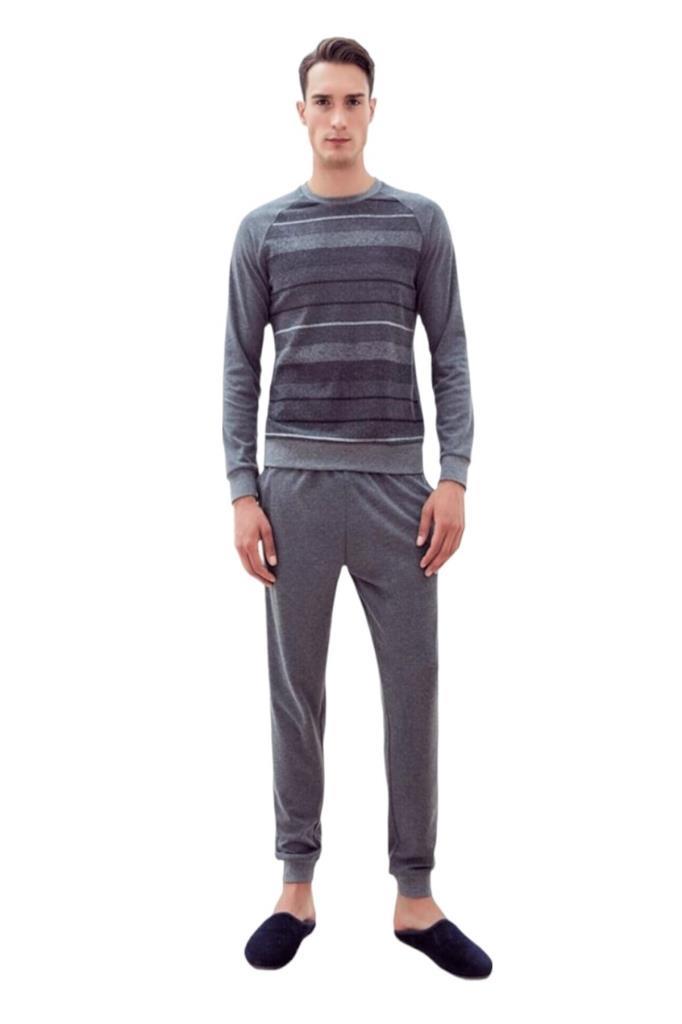 Sıfır yaka kışlık penye bilekli günlük erkek pijama takım,