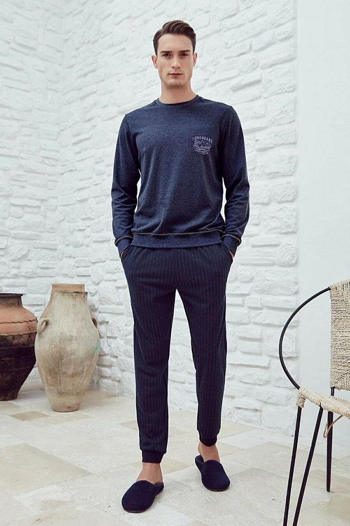 Sıfır yaka kışlık penye bilekli günlük erkek pijama takım,