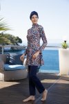 Estiva Boneli Dijital Baskı Boneli Tam Kapalı Tesettür Mayo