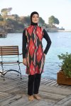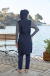 Estiva Çizgili Biyeli Fermuarlı Tam Kapalı Tesettür Mayo