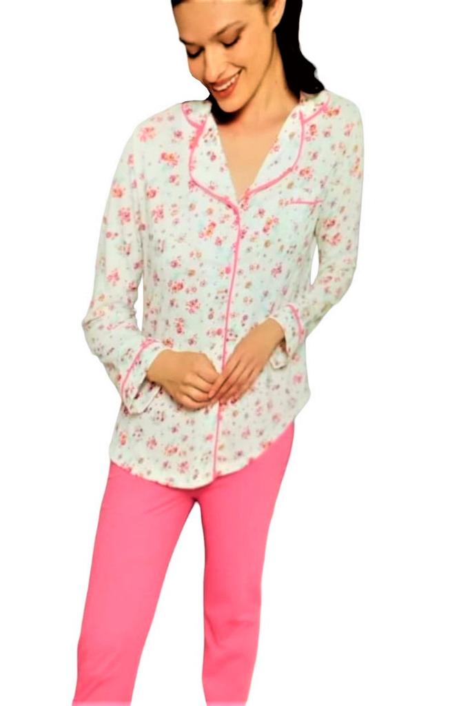 Uzun kol boydan düğmeli çiçek desenli kadın pijama takım, Yumuşacık pürüzsüz iki iplik penyedir, Kumaş içeriği; %100 Pamuk, Ekstra konforlu esnek ve yumuşak dokusu vardır, Kumaşı nefes alır, esnek ve hafiftir, Vücuttaki nemi emer, Yumuşacık ipeksi bir yeri vardır, Kaygan ve pürüzsüz bir dokusu vardır ten ile uyumludur, Daha uzun süre kullanımı ve kısa sürede deforme olmaması için yıkama talimatlarına uyunuz,