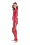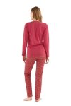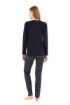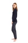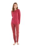 Uzun kol patlı düğmeli, altı desenli günlük kadın pijama takım,