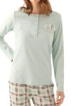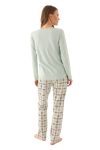 İki iplik sıfır yaka uzun kol ekose pamuklu bayan pijama takım,
