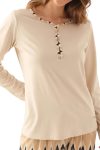 İki iplik yuvarlak yaka uzun kol viskoz bayan pijama takım,