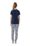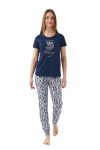 İki iplik sıfır yaka baskılı günlük bayan pijama takım,