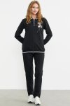 Örme ribana detayına sahip fermuar kapamalı eşofman takım sportif bir görünüm sağlamaktadır.